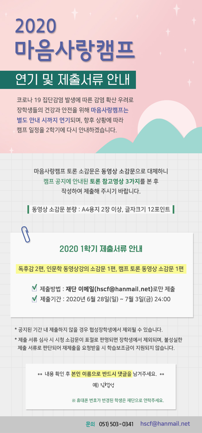 [Çù¼ºÀåÇлý°øÁö] 2020 Ä·ÇÁ ¿¬±â ¹× Á¦Ãâ¼·ù ¾È³»